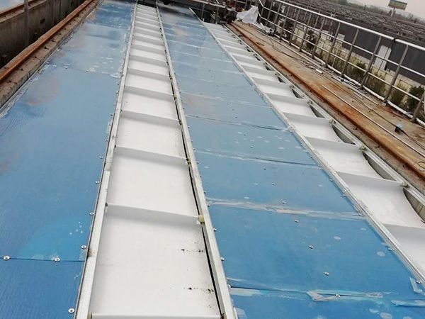 4、污水池加蓋(反吊膜)的膜材強(qiáng)度非常高,這樣一來(lái)膜材的使用壽命就大大的增加。污水池加蓋反吊膜材都做過(guò)特殊處理使用年限一般是在15-20年,膜材表面涂層以及基布都做過(guò)特殊的防腐蝕、防滲透處理。鋼構(gòu)的使用壽命在50年左右,鋼架在外邊支撐膜結(jié)構(gòu),采用特殊涂抹減少侵蝕氣體的侵蝕,發(fā)揮了鋼構(gòu)的較佳性能,實(shí)現(xiàn)了結(jié)構(gòu)骨架和材料覆蓋膜材料的完好結(jié)合,污水池加蓋結(jié)構(gòu)在各個(gè)方面的防護(hù)都做的非常到位。